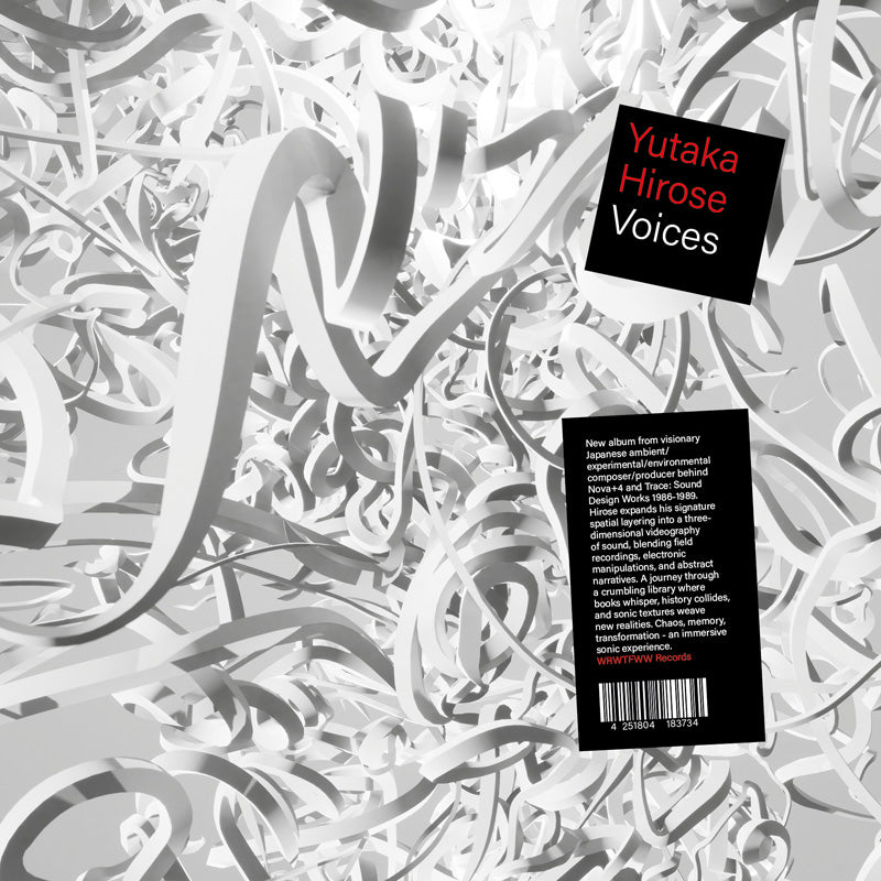 This is his brand-new album, Voices, available as a limited edition double LP and double CD, both accompanied by a booklet from the artist. With Voices, Yutaka Hirose expands his signature spatial layering technique into a three-dimensional sonic videography, blending field recordings, electronic manipulations, and abstract storytelling. This 12-track album is a journey through a ruined library where books whisper, history clashes, and sonic textures weave new realities.